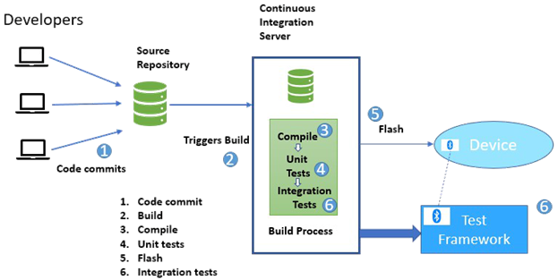 Das Framework beinhaltet ein genau definiertes Set von Regressionstests, welches sicherstellt, dass die Firmware keine grundlegenden Fehler beinhaltet und eine gewisse Stabilität aufweist, bevor es an die Testabteilung freigegeben wird. Die Regressionstests können als Teil eines CI-Systems (Continuous Integration) automatisch ausgeführt werden.